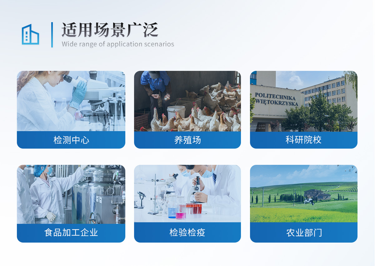 該高智能獸藥殘留檢測儀為集成化食品安全快速檢測分析設備,目前已于食藥監(jiān)局、衛(wèi)生部門、高教院校、科研院所、農業(yè)部門、養(yǎng)殖場、屠宰場、食品肉產品深加工企業(yè)及檢驗檢疫部門等單位廣泛使用。